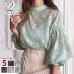 ブラウス シフォンブラウス シアー レース スタンドカラー ぽわん袖 バルーン袖 シフォン 花柄 シースルー 2WAY 大きいサイズ 七分袖 春夏 トップス レディース