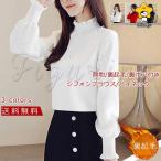 ブラウス シフォン レディース 無地 ハイネック 長袖 トップス カジュアル 裏起毛 裏ボア付き 暖かい きれいめ おしゃれ