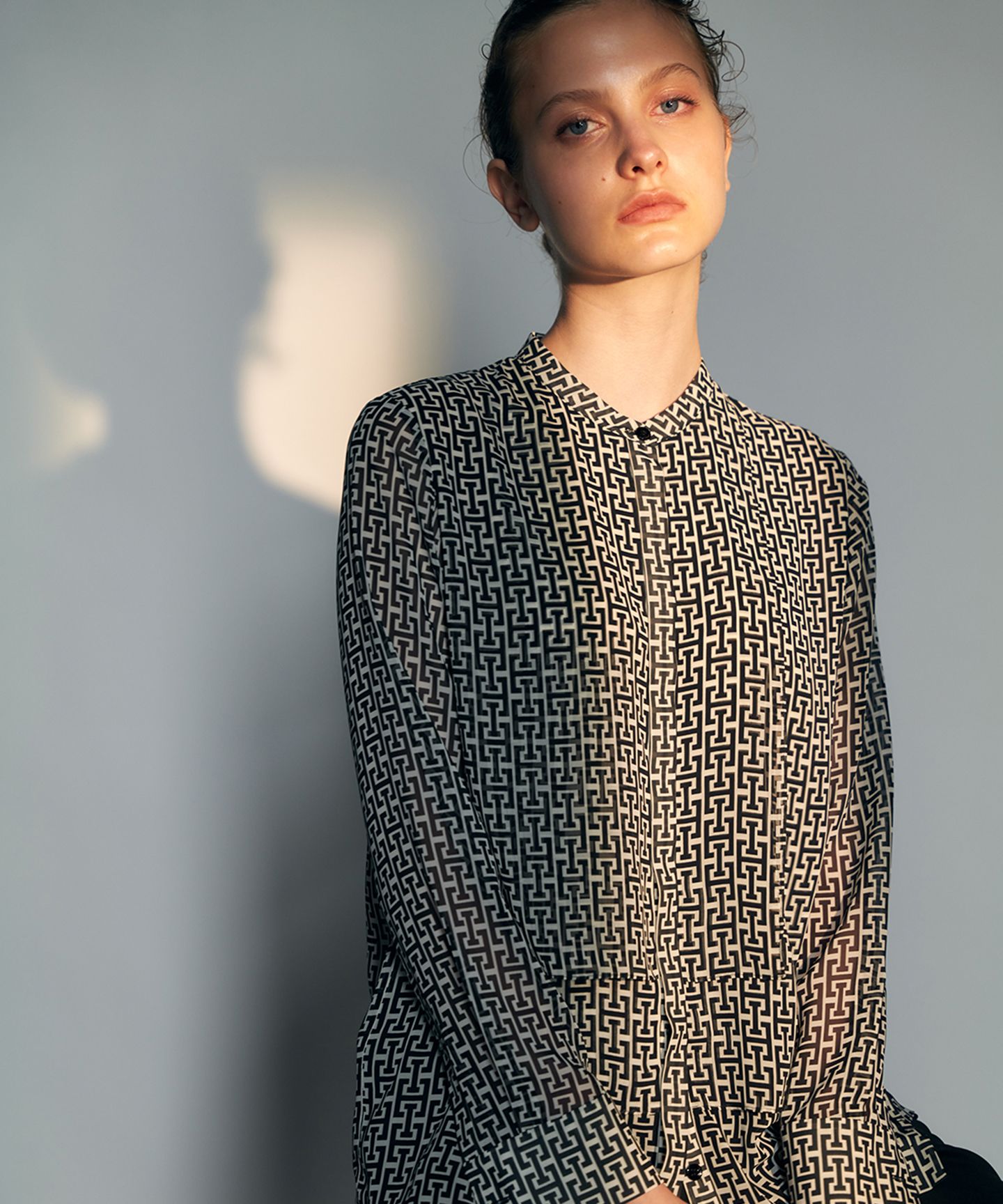 【30th ANNIVERSARY】 モノグラムプリントシフォン バンドカラーブラウス