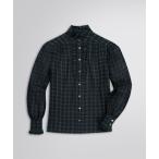 ブラウス シャツ レーヨン ラッフルカラー ブラックウォッチ シフォンブラウス レディース