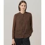 ブラウス シャツ モノグラムプリントシフォン バンドカラーブラウス レディース
