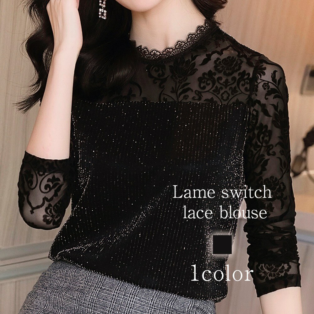 【\クーポン利用で20%OFF!/】 ブラウス レディース ラメ切替レースブラウス おしゃれ 秋 黒 カットソー Tシャツ フリル レース オフィス ワンピース 長袖 白 フォーマル 高品質 人気 シフォン 春 シャツ ノーアイロン ブランド カジュアル 安い スーツ