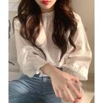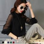 ブラウス シャツ 大人気アイテム春も活躍♪レイヤードにも使える フリルスタンドネックレースシフォンブラウス レディース