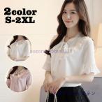 ブラウス レディース シフォン シャツ ブラウス 白 リボン付 フレア袖 半袖 オフィス 韓国風 ブラウス トップス 通勤 着痩せ オシャレ 大人 上品 30代 40代 50代