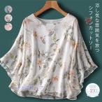 シフォン ブラウス ロング丈 チュニック 花柄 レディース Tシャツ 体型カバー カットソー トップス シフォンブラウス 大きいサイズ ゆったり 40代50代60代