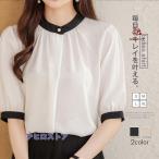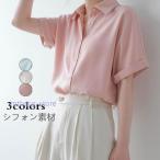 ブラウス レディース 夏 シフォン シャツ 半袖 襟付き オフィスシャツ トップス フォーマル きれいめ ゆったり シンプル 折り返し袖 通勤OL おしゃれ 夏服