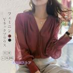 シフォン ブラウス Vネック トップス レディース 長袖 とろみブラウス とろみシャツ フォーマル スーツ インナー オフィス カジュアル 入学式 入園式 卒業式 卒