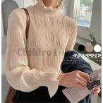 ブラウス 春 シフォン シャーリング ギャザー レディース シアー レース トップス シアートップス レイヤード ハイネック フリル フレア袖
