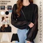 ブラウス 春 シフォン シャーリング ギャザー レディース シアー レース トップス シアートップス レイヤード フレア袖