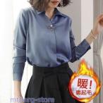 シャツ レディース ブラウス 長袖 シフォン トップス エレガント ビッグシルエット 隠してボタン 通勤 オフェス OL オフェス 入園式