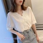 シフォンブラウス 夏 レディース ブラウス 半袖 Vネック サマーブラウス ゆったり レース 半袖ブラウス シフォン シャツ 白 半袖シャツ