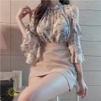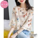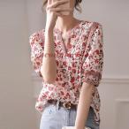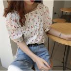 ブラウス レディース 半袖ブラウス 春夏 オフィスブラウス 花柄パフスリーブ オシャレブラウス シフォントップス 韓国風 大人 上品 通勤OL ゆったりシャツ 40代