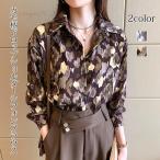 シャツブラウス シフォンブラウス カモ柄 襟付き ドロップショルダー レディース トップス