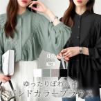 ブラウス シフォンブラウス トップス レディース 長袖 バンドカラー シャツ シャツブラウス シフォン オーバーサイズ ボリューム袖 ロング バンドカラーシャツ