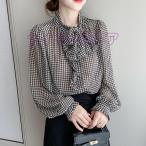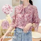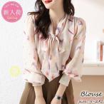 ブラウス レディース 春秋 新作 花柄ブラウス 韓国風 オフィス シフォンブラウス ゆったり きれいめ 蝶結び おしゃれ 着痩せ 大人 通勤