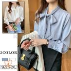 ブラウス レディース 春 シフォン ビッグリボン 長袖 綿混 ボウタイ 大人 可愛い おしゃれ 上品 きれいめ ゆったり