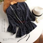 シャツ ブラウス シフォンブラウス プルオーバー 夏 春 秋 フリルブラウス 長袖 パフスリーブ ボリューム袖 フリル 着痩せ 二の腕カバー ペプラム ウエスト