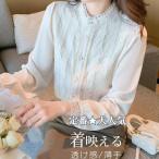 シャツブラウス シフォンブラウス Vネック 長袖 レース おしゃれ 通勤通学 レディース トップス