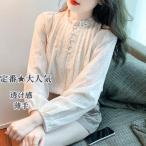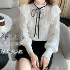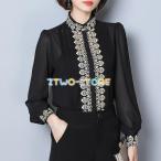 2色有り レディース シャツ ブラウス シフォンブラウス 長袖 ハイカラー ランタンスリーブ 刺繍 シングルブレスト 薄手 シースルー パーティ オフィス きれいめ