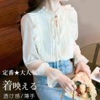 ブラウス レディース トップス シャツ シフォン 長袖 リボン リボンタイシフォンブラウス