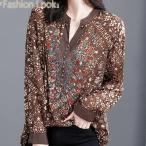 ブラウス レディース 春秋 花柄 シフォンシャツブラウス 長袖 オフィス シャツブラウス シフォン オシャレトップス 韓国風 通勤 OL 大人 上品