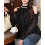 レディース トップス ブラウス オフショルシフォンブラウス シフォン オフショル 立ち襟 上品 きれい