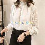 2色有り レディース ブラウス シフォンシャツ 長袖 スタンドカラー ランタンスリーブ レース トップス 無地 上品 きれいめ エレガント 大きいサイズ スリム L-4X