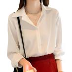 シフォンブラウス 長袖 レディース シャツ ブラウス 無地 長袖 Vネック 開襟シャツ トップス 体型カバー オフィス 通勤 OL おしゃれ