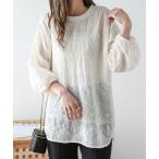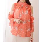 ブラウス シャツ ブーケ柄 カットアウト フレアスリーブ シフォン ブラウス レディース