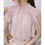 ブラウス シャツ シフォン バイアスチェック フリル袖 ブラウス レディース