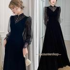 おしゃれロング ドレス パーティードレス 個性的 黒 袖あり 長袖 レース おしゃれ 結婚式 二次会 お呼ばれ フォーマル 演奏会 発表会 大人 かっこいい