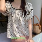 スモック ブラウス 半袖 レディース かわいい おしゃれ 春夏 トップス ゆったり 薄手 バルーン袖 バックリボン