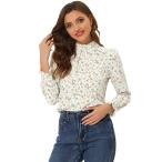 Allegra K 花柄 ブラウス フリルネック パフスリーブ ギャザースモック長袖 レディース ホワイトイエロー XL