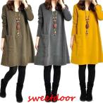 ワンピース 秋 冬 春 きれいめ 大人 上品 長袖 30代 40代 50代 カジュアル ナチュラル服 ゆったり シンプル スモック エスニック 大人可愛い 膝丈 ミディアム ナ