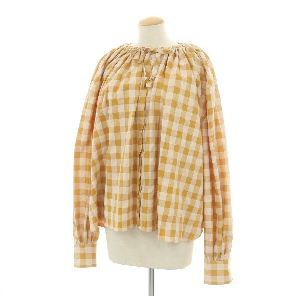 【SALE10%OFF/返品不可】【新品】バグッタ Bagutta コットンポリエステル チェック スモック ブラウス シャツ マスタードxベージュ【サイズS】【S/S】【状態ランクN】【レディース】