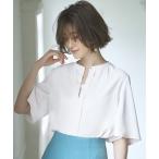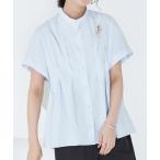 ブラウス シャツ ピンタック バンドカラー 半袖シャツ レディース