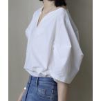 ブラウス シャツ タックギャザーバルーンノースリーブ レディース