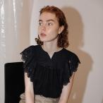 【Bilitis dix-sept ans】 Voile Tudked Boluse ビリティスディゼッタン タック ブラウス コットン 丸襟 フリル White Black 2911-915