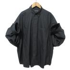 美品 クリーニング済 BALENCIAGA バレンシアガ 2024年モデル コットン ポプリン タックスリーブシャツ ブラウス 834033 36 ブラック レディース 古着 中古