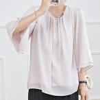 フロントタック シアー 7分袖 フレア プルオーバー 女性 レディース トップス ブラウス シフォン ジョーゼット 透け感 春 夏 単色 無