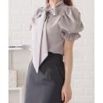 ブラウス シャツ ボウタイ付きタック入りパワーショルダーブラウス レディース