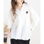ブラウス シャツ キャットリボン刺繍タックシャツ レディース