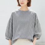 ギンガムチェック ブラウス チュニック レディース 七分袖 パフスリーブ ゆったり 大人可愛い カジュアル ナチュラル お洒落 体型カバー 着痩せ 春夏 送料無料