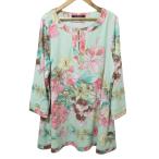 良品 LEONARD レオナール フラワープリント カンカンストレッチ ハーフボタン ブラウス チュニック LL ライトブルー レディース 古着 中古