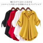 シフォン ブラウス チュニック 着痩せ レディース チュニック トップス 無地 大きいサイズ Aライン 長袖 チュニック 送料無料