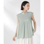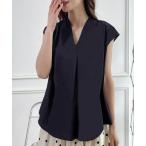ブラウス シャツ 胸元タックフレンチスリーブブラウス ノースリーブブラウス レディース