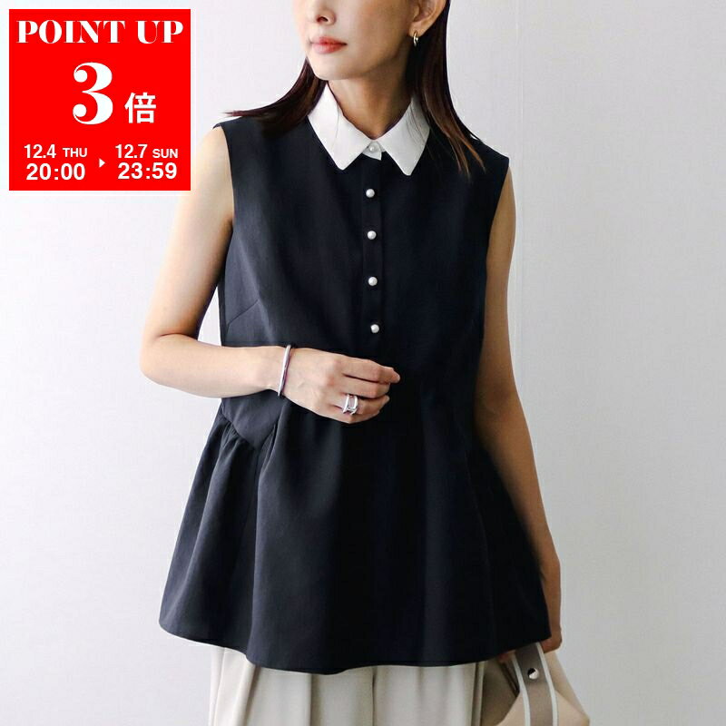 ブラウス シャツ ダブルクロス ペプラム ノースリーブ ブラウス レディース