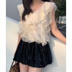 ブラウス シャツ ノースリーブフリルブラウス レディース