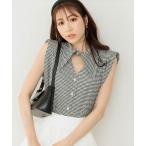 ブラウス シャツ 「選べる」フリルノースリーブブラウス(リネン混/ギンガムチェック/ストライプ) レディース