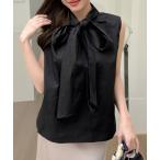 ブラウス シャツ ノースリーブボウタイワッシャーシアーブラウス レディース